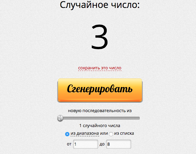 Так вот, сегодня вечером я запустила генератор случайных числе и вот, что у меня получилось: